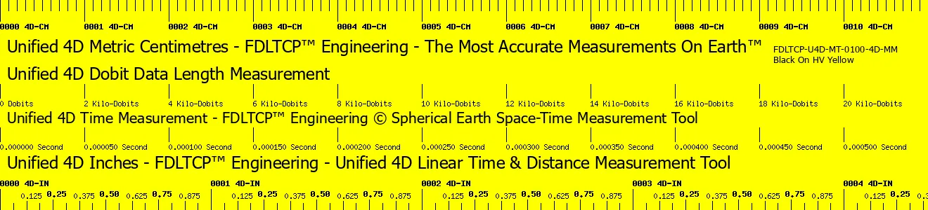 FDLTCP™ Engineering - Unified 4D Space-Time Measurement Tools Unify Spacial Dimensions Of Both Calibrated Imperial Units, Metric Units, And A Spherical Earth Time To Distance Constant, Along With Providing A Dobit Length For A Given Distance, Which Is Useful For Computer Engineering That Requires Calculations Down To The Nanometer Scale.